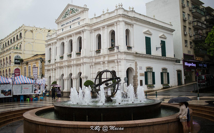 又下起大雨,躲在一旁的亭子里看着雨水肆意的落下,没一会,看雨渐小,我们又接着出发;再次回到了议事亭前地,走进了仁慈堂大楼。