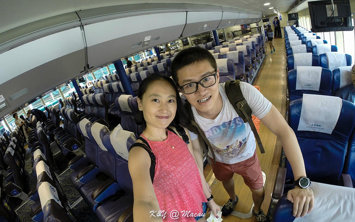 进入船舱,航班班次的密集也使得船舱乘客很少;坐在我们斜前方的大叔,看起来有70岁,打开包拿出一沓不知是港币还是澳币开始数起来,都是千元大钞啊,我和Marat先森嘀咕着,这大叔肯定是在赌场大捞了一笔啊!