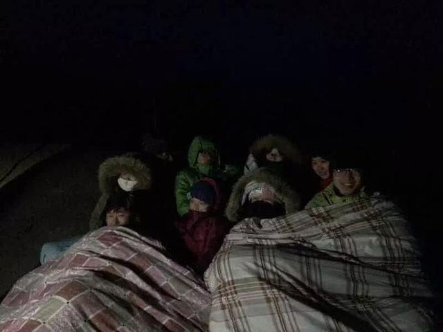 雾很大,过了很久渠儿也没上来,后来才知道是雾太大让他已经找不着回去的路了,才耽误了时间。他回来后,我们五个人一人裹一床被子,在地上铺着毯子,围坐在一起,也是幸福感爆棚。