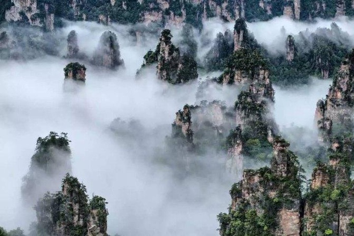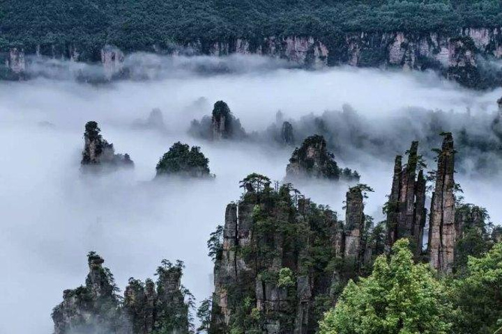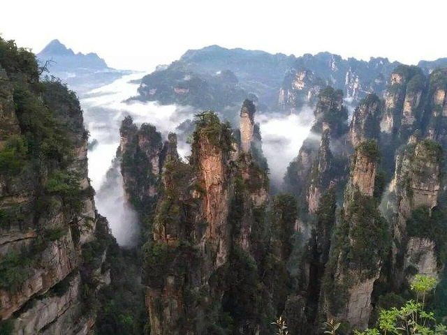 睡到自然醒后,退了房,把行李寄存在总台,外出吃了当地人的早餐(10元),然后开始黄龙洞、天门山的自由行。