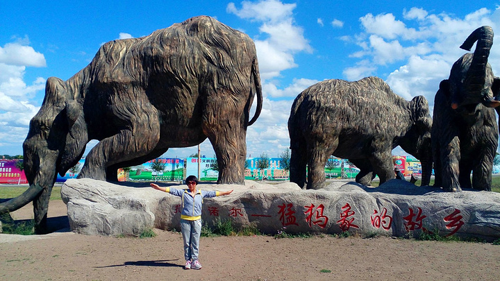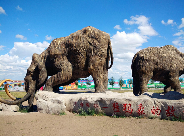 前往满洲里的路上,途径猛犸象的故乡—扎赉诺尔。扎赉诺尔区简称扎区,是内蒙古自治区呼伦贝尔市辖区。在1980年,扎赉诺尔露天矿先后发现2具猛犸象骨骼化石。1984年春天,扎赉诺尔矿务局露天矿又发现了3号猛犸象化石,扎赉诺尔也因此获得“猛犸故乡“之称。