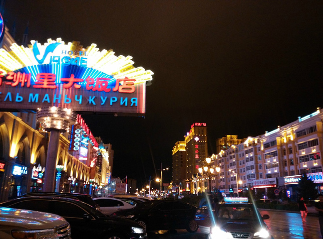 满洲里的夜景确实很美!金碧辉煌!不过很不巧,当天在下雨,所以只是匆匆逛了一下就回去休息了。