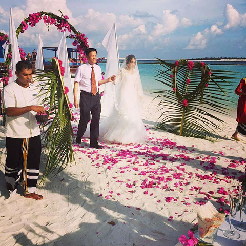 发一张美美的自拍,刚到满月岛,看见这么美丽的景色,实在是很激动,对于明天的婚礼真的是无比的期待。