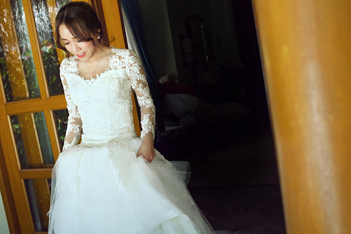曾经无数次想像自己为了最爱的人穿上婚纱的曼妙与美丽:一定有着被幸福晕红了如苹果般的脸宠,一定有着被爱陶醉了如星子般的眼眸……如今真的实现了。婚纱对于女人来说是种很特别的存在,就像女人心底一个最温暖最柔情的梦,在女人的心里最深处静静地蛰伏着,随时等待着一阵风起,直到吹得心旌摇曳,吹得婚纱裙袂飘飘。看着穿上婚纱的自己,美丽的不可方物,真想永远的留下在这一