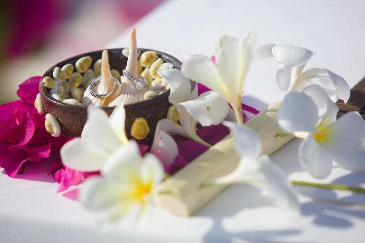 下午的时候,在海边的别墅里面接受了来自朋友们的祝福,带上了独具特色的花环,还有一束手捧花,婚礼就快要开始了。说起捧花,是源于一种古老的习俗观念:古代西方人认为,气味浓烈的香料及香草(甚至包括大蒜和细香葱)可以卫护婚礼上的人们免遭厄运及疾病的侵害。后来这一习俗被沿袭下来,逐渐有了更多的含意。流传最广的一种说法莫过于:未婚女子在婚礼上接到新娘丢出的捧花,就会找到自己的幸福伴侣。