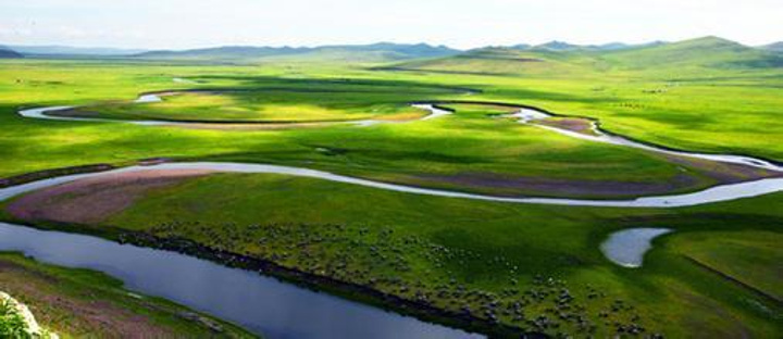傍水依山山可远,依山傍水水无痕,草绿天晴晴万里,只因我在大草原。