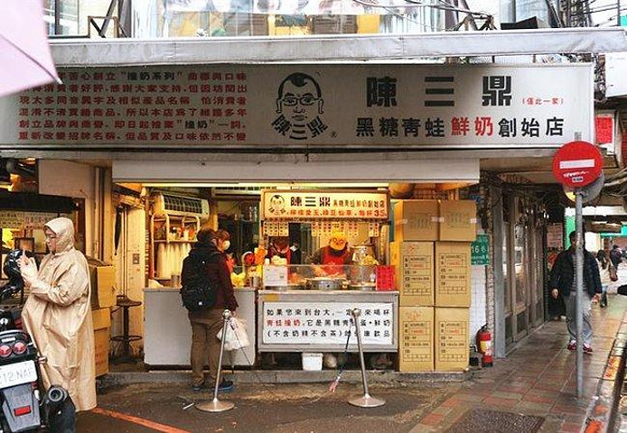 可以说是公馆夜市的招牌了,所谓青蛙撞奶其实就是珍珠黑糖牛奶。这一家是近年来火起来的,人气非常旺,如果是在饭点去,要排很久的队。珍珠是精心熬制的,非常滑糯,牛奶用的是实在的林凤营大包装,非常纯正。非常推荐!