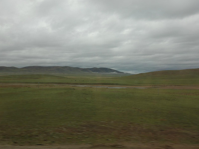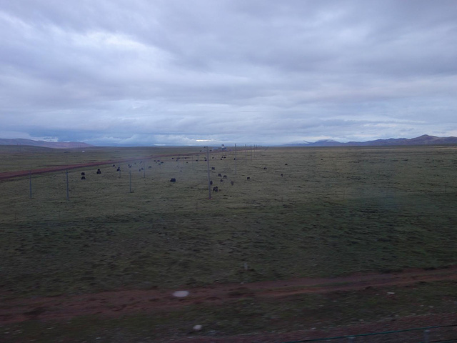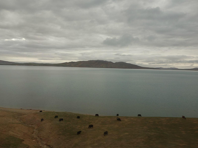 能够走在青藏铁路上,是我终身所愿。乘坐在进藏的Z6801列车上,我们最期待的途经点有,青海湖、格尔木车站、可可西里无人区、措那湖、安多车站。但囿于铁路不能随走随停的限制,只好隔着车窗拍下那期待中进入眼帘的美景。可惜车窗的双层玻璃的折射和透光率差,让我的照片蒙上一层淡淡的薄雾和讨厌的泥沙斑痕。