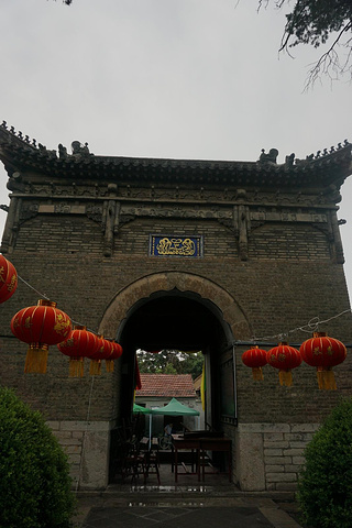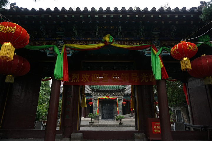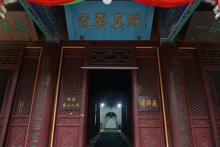 二门是单檐硬山式建筑,面阔三间,建筑面积为45平方米,檐下施斗拱,墀头砖刻伊斯兰教经文和图案,工艺精湛,六扇朱红大门三米多高,均有匾额,正中是明成化丙戌科进士刘瓒题字“开天正教”;右为清代镇守山东登州等地的总兵官军提督密勇巴图鲁马建纪题字“默德真传”,左为清康熙二十三年掌教赵璜、张养心、刘翰美题字“瞻天仰圣”。现存二门为乾隆二十年重修。