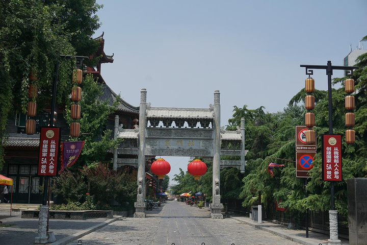 从范公亭公园出门,向东步行1000米左右,是青州古城景区。沿着牌坊向南便是偶园街。整条街是古香古色的仿古建筑,两边商铺林立,稍作休息,继续前行。今青州城内还保留有一些明清时期的古老街巷,较完好的有:棋盘街、昭德街、卫街、偶园街、北关街等。