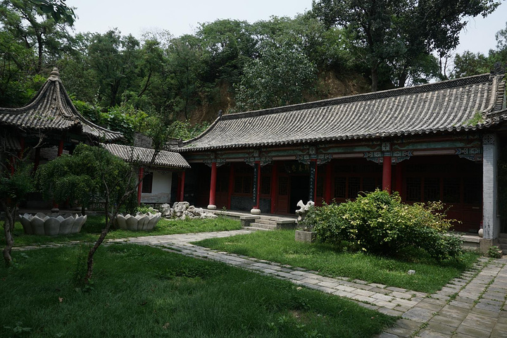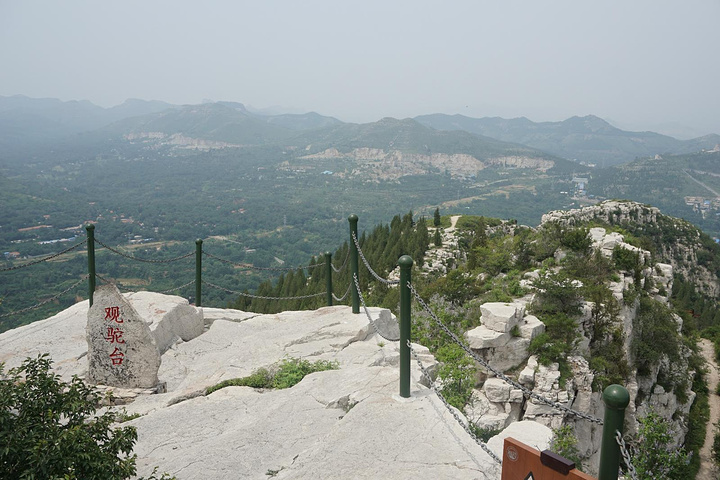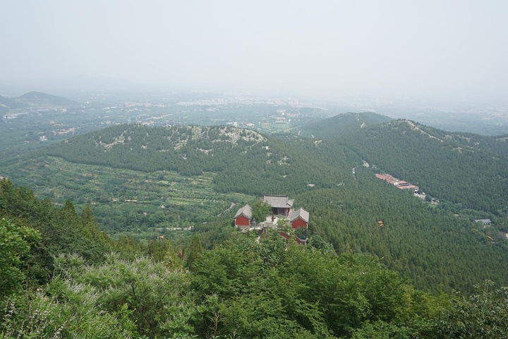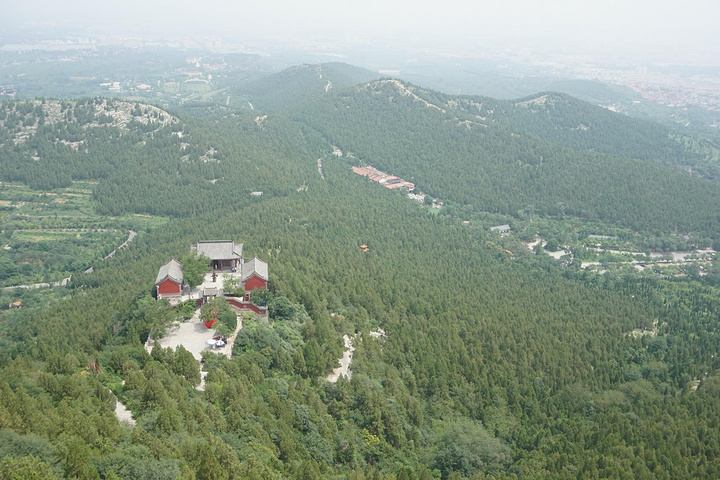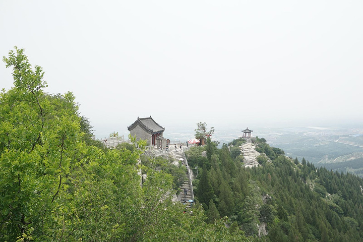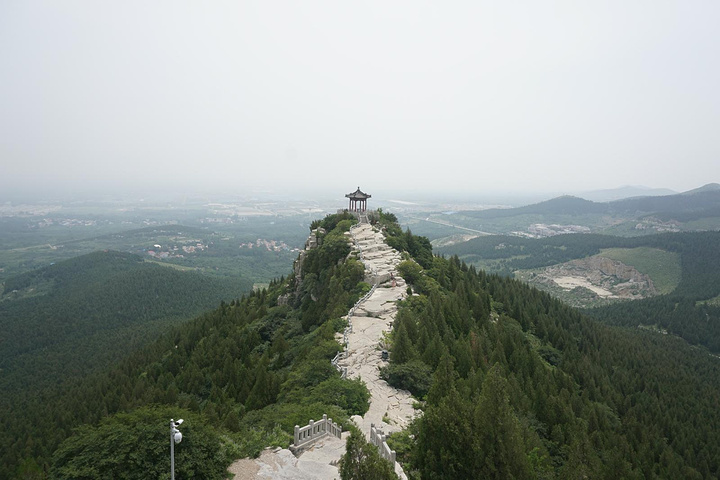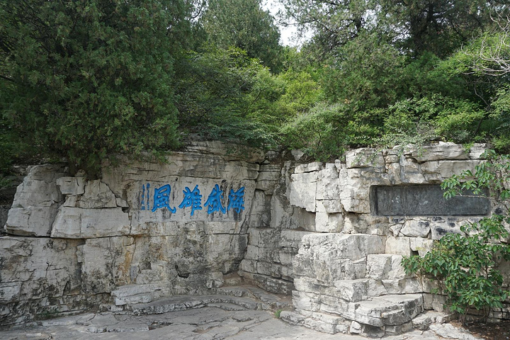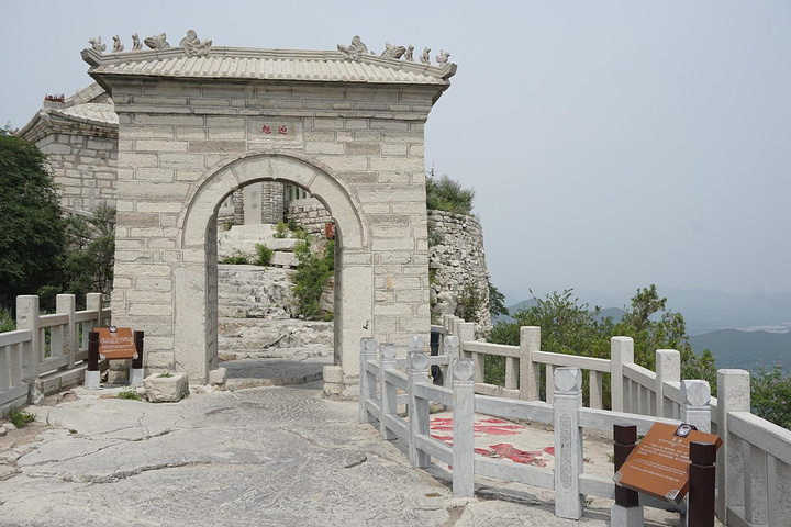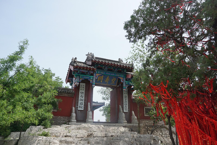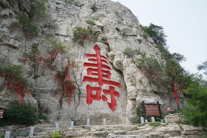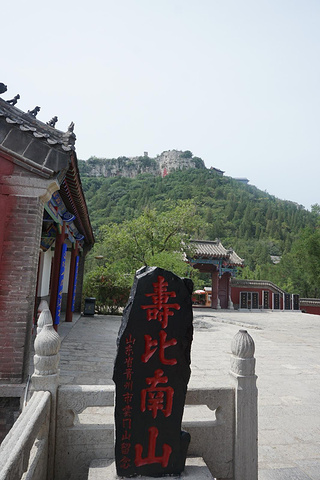 一路登攀,半山有望寿阁。置身阁中,仰望南山,恰见崖巅寿字,故名望寿阁。匾额为启功题写。