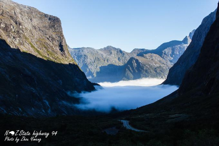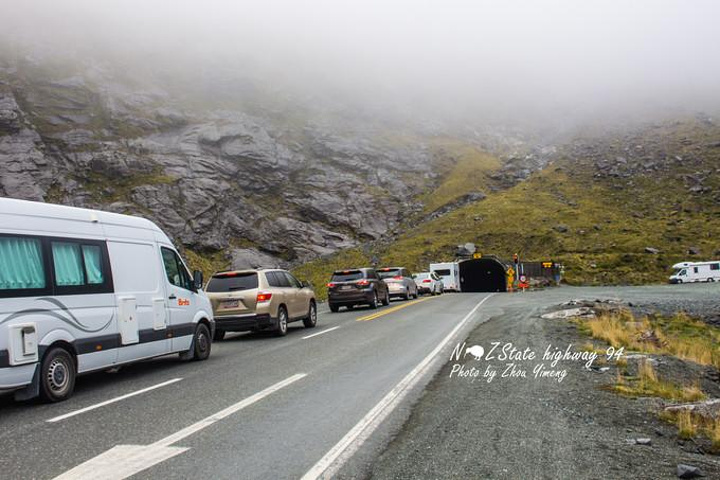 终于来到Homer Tunnel 荷马隧道,94号公路的最高点,隧道长1.2公里,是前往米尔佛德峡湾的唯一通道。蒂阿瑙的海拔是220米,米弗峡湾的海拔不到70米,而荷马隧道的海拔近1000米,也就是说这段1.2公里的隧道,海拔落差达到近900米。