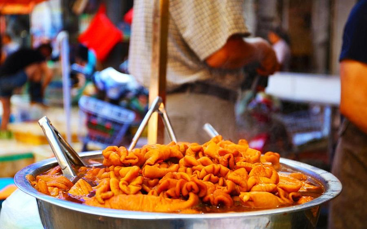 贩卖新鲜的海产品、水果,还有各类腌菜,边逛边吃间还能尝到一些古早味的糕点。