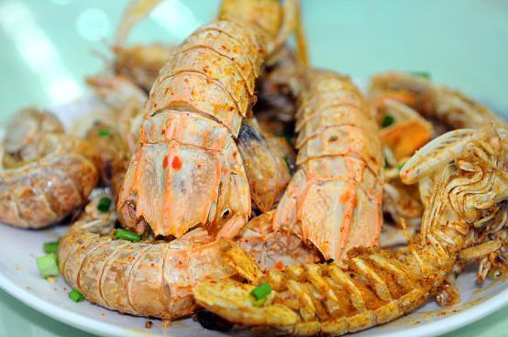 椒盐皮皮虾,味道正宗,但是吃的时候要小心一点,很容易扎手的。