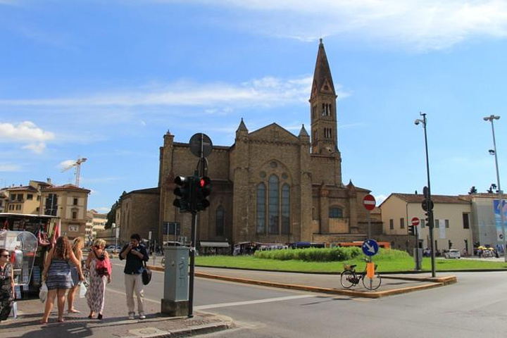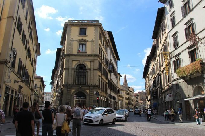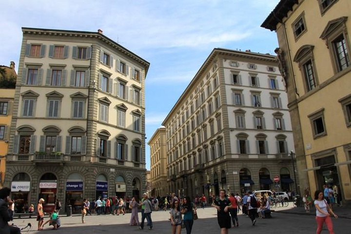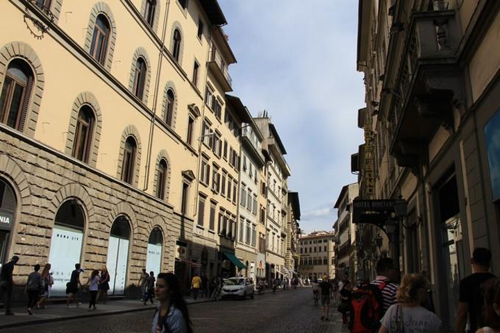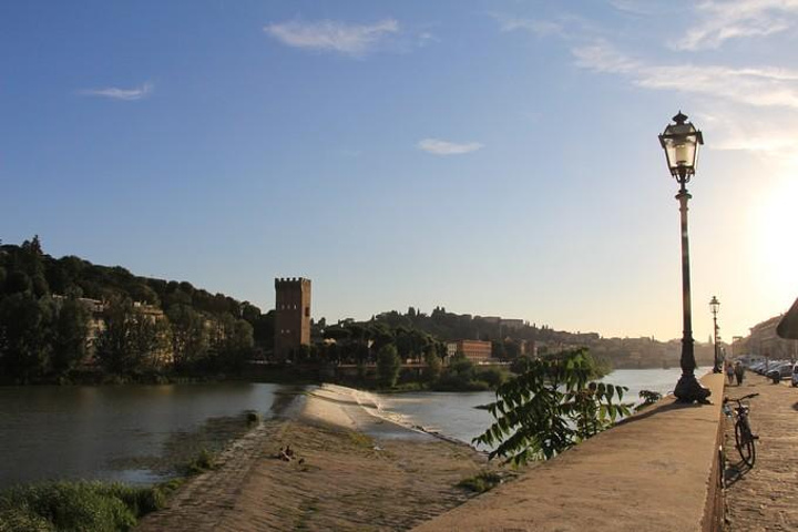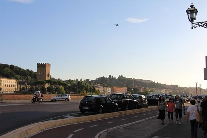 从比萨行车一个小时到达文艺复兴的发源地托斯卡纳 地区的首府-佛罗伦萨 ,车上导游继续介绍佛罗伦萨 。佛罗伦萨 位于亚平宁半岛北部一个宽广盆地的中心,地中海 气候,它是欧洲 文艺复兴运动的发源地,更是全世界的艺术中心!许多杰出的艺术家都是从这里开始他们璀璨无比的一生~佛罗伦萨 是意大利 文艺复兴的心脏,徐志摩先生称之为“翡冷翠”。像马萨乔、多那太罗、波提切利、达•芬奇 、拉菲尔、米开朗基罗、提香、曼坦尼亚等等如雷贯耳的名字,多半都与这座城市有着千丝万缕的联系。佛罗伦萨 是一个真正的露天博物馆,有着无数古迹,其中包括圣母百花大教堂和乔托钟楼,学院美术馆,旧宫和展览着独一无二杰作的乌菲兹博物馆。然而,佛罗伦萨 的魅力也在于阿尔诺河堤,如画一般的老桥……