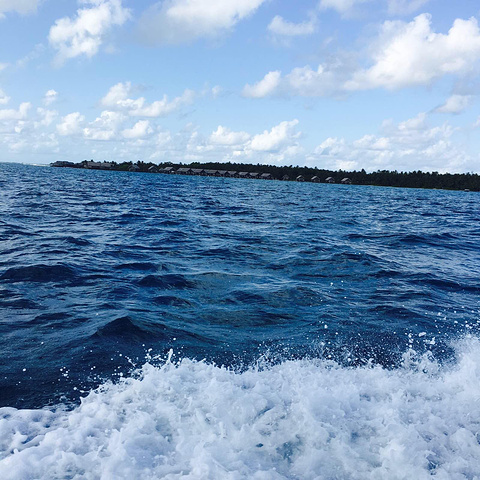 深蓝的大海好美 从Gan机场乘船8分钟即可抵达马尔代夫香格里拉度假酒店咯