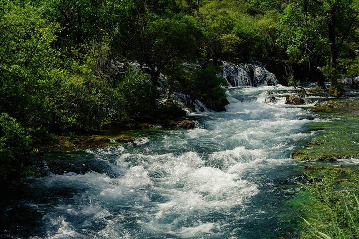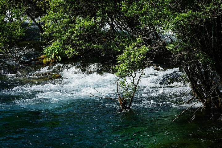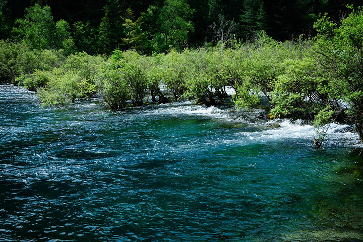 仔细观察便可以看到,这水有五种颜色,五种不同的颜色,在同一个地方流过,实在神奇,怪不得这里叫神奇的九寨!