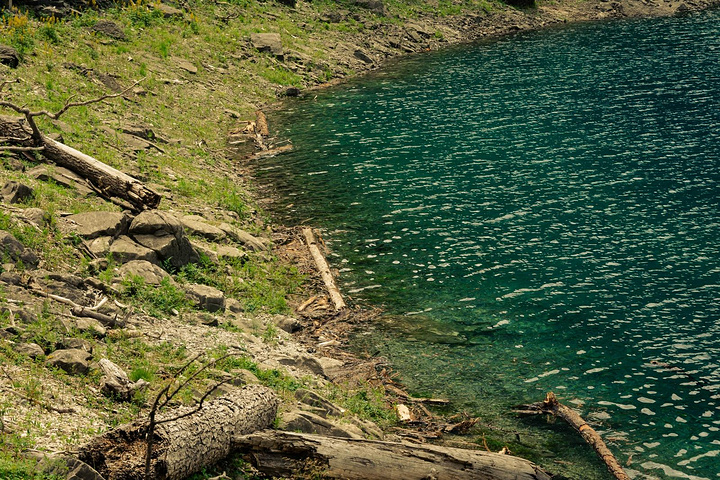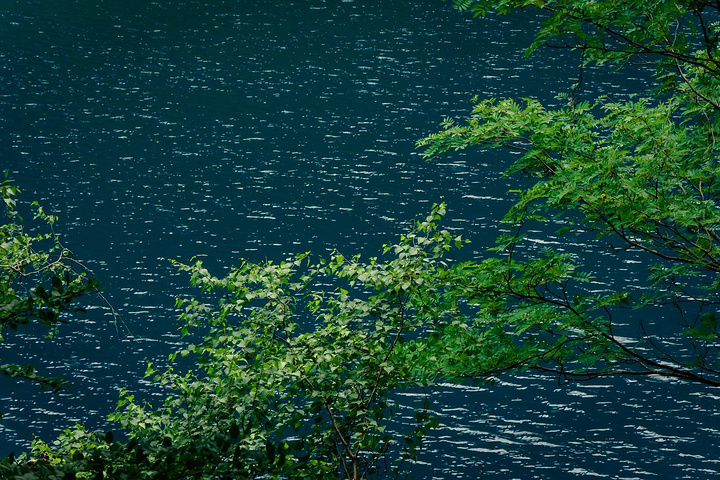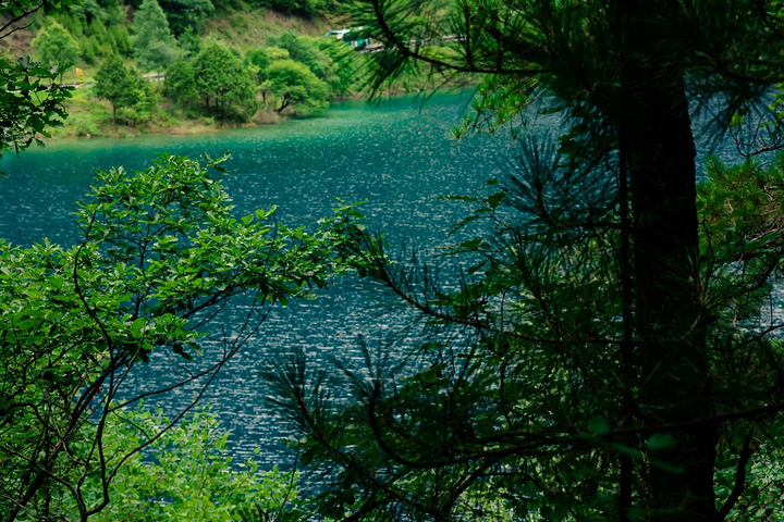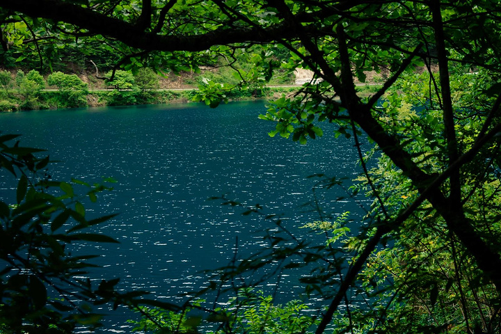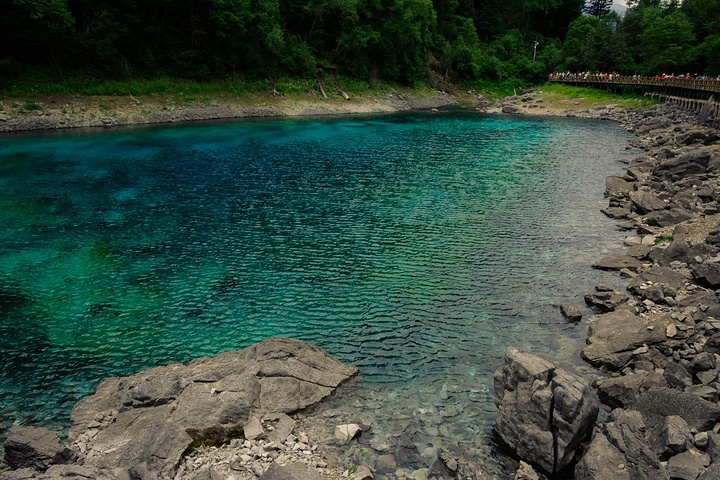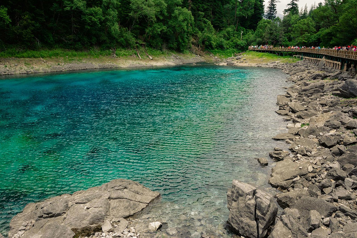 最后还是和大家走散了,我和托斯大哥,乘车来到卧龙海,人实在太多,想好好拍一张图片都是很难的,大家都在拍照,必须要等别人拍完才能拍到,我排队半分钟,刚好天气不错,拍到了这张还算让自己满意的照片!绿色的树 ,蓝色的水, 甚为奇观。这张图片用的手动挡,点测光,小光圈拍摄,这样可以保留景区本身的色彩!