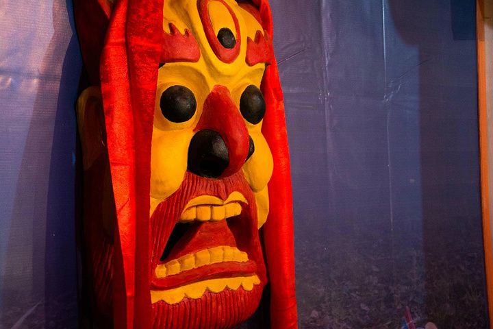 是白马藏族地区跳的“诌舞”(与藏传佛教寺院里跳的“金刚舞”动作相似) 白马藏族的老者告诉我们,这个面具只有男人可以摸,女人不可以摸!