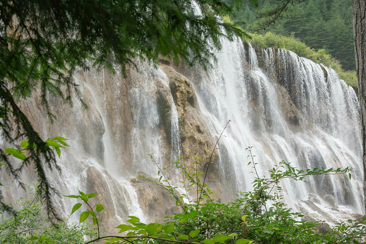 继续在人群中穿梭,来到了树正瀑布,水流冲下来形成瀑布,便不再是蓝色,而是变成了正常的颜色。