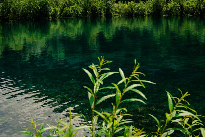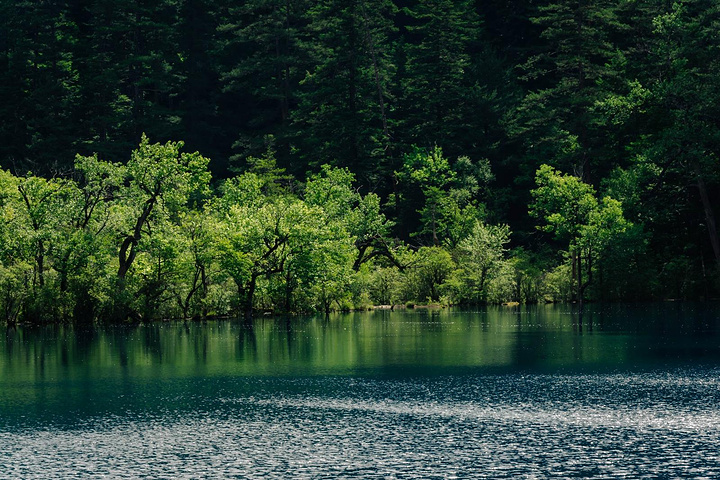 我决然没有想到,我为了徒步去犀牛海拍摄这张照片,耽搁了三个小时的时间,当独自一个人来到犀牛海对面的时候,我完全没有想到与对岸鼎沸人声不同的是,这边居然一个人都没有,也正好合了我的心意,我花了一天的时间,居然只跑完了九寨沟沟的一半,想想也是醉了。