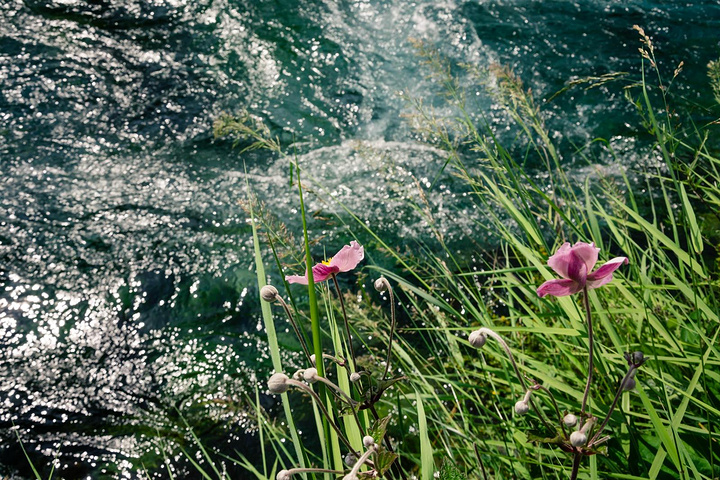 长海边伸开的小野花和远处山上覆盖的冰川,形成鲜明的对比。这里是春天,对面是冬天,形成了一种独特的美!大自然总是创造很多让我们吃惊的事情!
