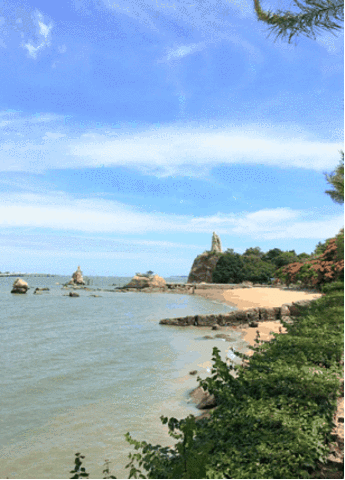 皓月园,开始沿着海边向每个目的地出发,开启绕岛一圈的行程,在烈日的暴晒下,突然看到这一景象,双手提满伴手礼的我还是毫不犹豫的拿起相机拍照,沙滩上情侣特别多,严重虐狗啊⋯⋯⋯