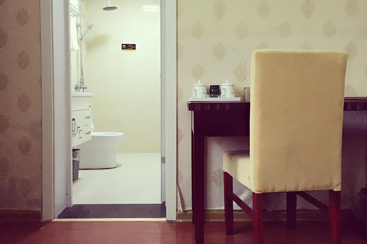 标间设计现代为主,,设施齐全,家具精致。墙上悬挂有液晶电视,米黄色的沙发柔软舒适,卫生间里干净简洁,住着很是舒服。