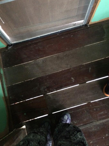 我知道这里是东南亚国家,何况我来到的是乡村这么自然的环境,当然会有壁虎和蜥蜴,但没想到居住的地方是这么用木板搭建的,较为简陋,除了遮风挡雨以外,觉得简直和野外零距离接触,房间的地板都是大缝子,可以直接看到下面的草地。