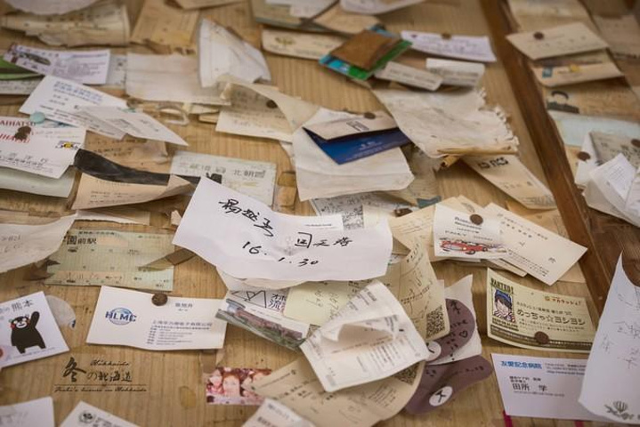 路经北滨站,恩,充满了文艺气息。在这个小站台里,写满了日本国内和世界各国来的游客的小便签条。