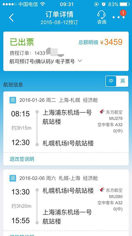 2015年暑假刚从北海道回来,7月15出发,7月22回程,北海道漫无边际的紫色花海让我迷醉,立马爱上了日本北方的这一大片土地。迅速安排下一程的计划:冬季再上北海道。作为英语老师,我除了有沟通层面的语言能力之外,更有合情合法合理的假期。规划好时间,就开始携程看机票,越早定下行程越有利于经济预算,购票的选择空间也大不少。我一切以方便出发,选择直飞。在一个相对不是很高的点位,入东航上海起止的札幌直往返飞机票一张,RMB3459。我坐标:江苏扬州,一个比较宁静的三线小城市。后来一路看MU279飙到了5位数,暗暗觉得自己仿佛赚钱了