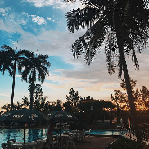 等到了马来西亚办理好一切熟悉搭乘机场大巴到马航给我们安排的Nilai Springs酒店后已经三点多了,洗完澡倒头睡…不得不佩服我们家小老太的体力,第二天一早拉我起来去吃酒店早餐+逛酒店…说什么她从窗户看出去觉得很漂亮…后来出去溜达了一圈发现是挺不错,还有高尔夫球场。