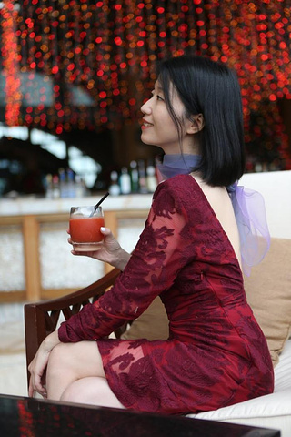 黄昏的大堂吧,喝一杯和酒红露背小礼服默契颜色的三亚玛丽吧。