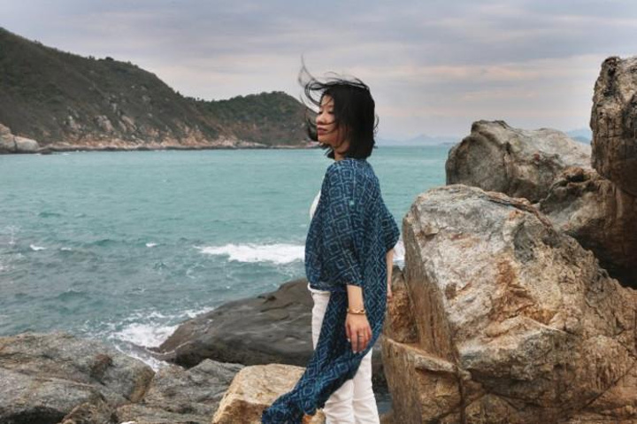 把白色蕾丝围巾胡乱当作头巾,走进西岛寒潮的早晨。