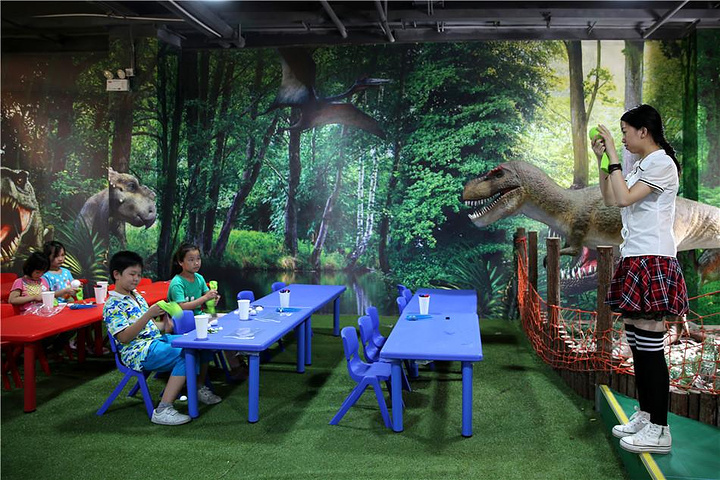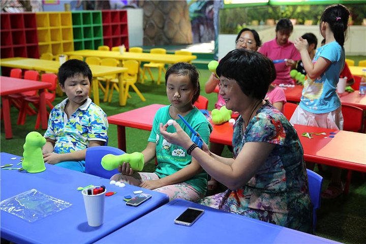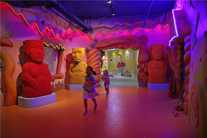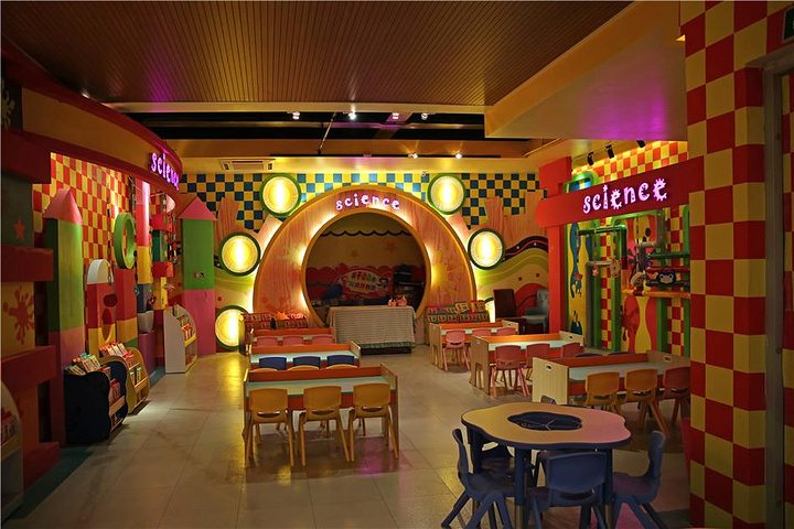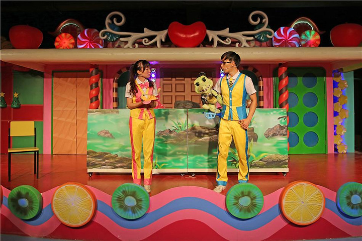 一个是苹果姐姐故事屋,苹果姐姐是台湾的一位演员,创造了一个主人公是一只叫BIBI的 小企鹅的童话故事,后来也创办了苹果姐姐故事屋,孩子们围坐在舞台前,听台上的哥哥姐姐讲述一个个关于爱的童话故事。在这里不 仅可以听故事,还有很多奇妙的机关。其中有几个花朵造型的摆件,都是音控设备,只要对着 花朵说“我爱你”,花朵就会亮灯,当孩子们给所有的花朵都说出“我爱你”之后,花朵们会 一起大合唱哦!除了学说“我爱你”之外,“爱的秘密花园”里还有一个让孩子学习“拥抱” 的地方,只要6个孩子同时抱住大树和旁边的人偶,大树上的苹果就会亮灯,大树的树干也会发出音乐。