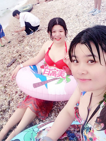 到了渔家我们吃了份鲅鱼饺子,味道很鲜美哦👍,吃完午饭已经3点多了,老板说月牙湾就在前面,走5分钟就到了,于是我们迫不及待的换上大长裙,let’s go