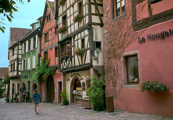 瑞克威尔(Riquewihr),距北部的科尔玛(Colmar)15公里。是这一带少数没有受到二战严重破坏的城镇,整个镇子基本保持着十六世纪时最原始、淳朴的自然风采。小镇仿佛定格在古朴纯美的中世纪。漫步青石铺就的老街旧巷,欣赏家家户户窗台的鲜花,路旁的建筑里有着古老的历史和故事.....。