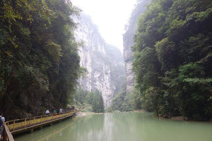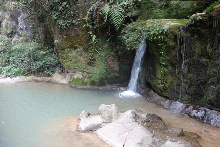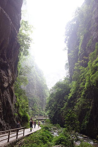 一路走去,绿草成茵,修竹摇曳,飞泉流水,一派雄奇、苍劲、神秘、静幽的原始自然风貌,以山、水、瀑、峡、桥共同构成一幅完美的自然山水画卷。