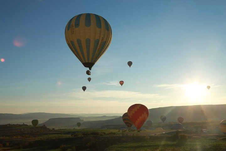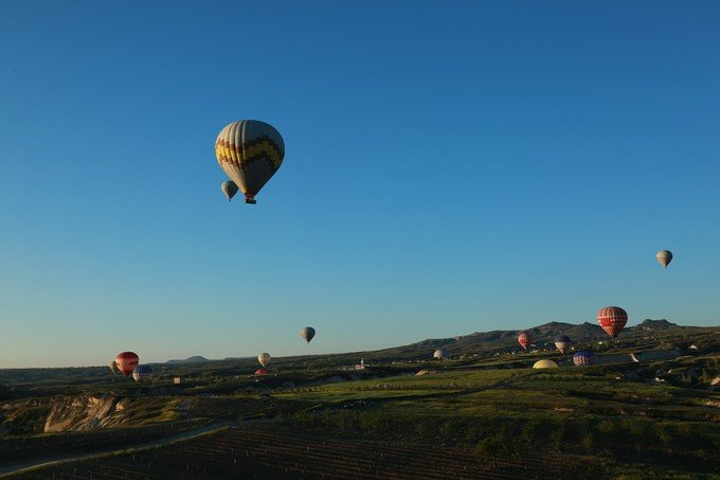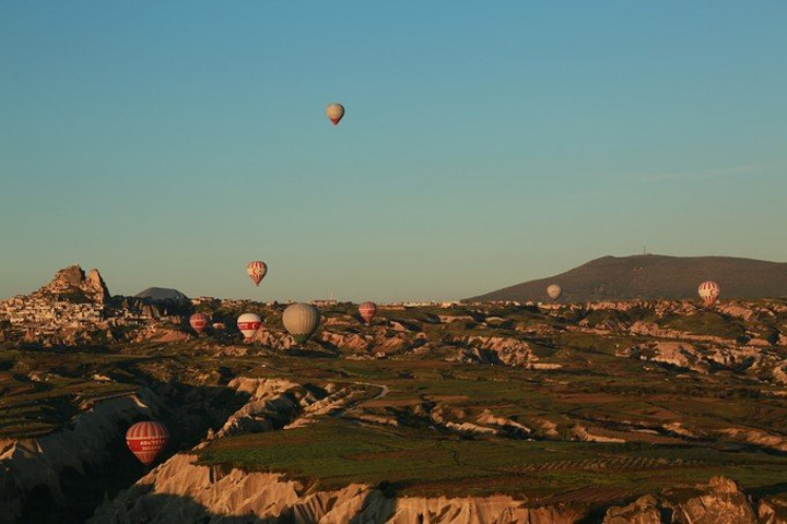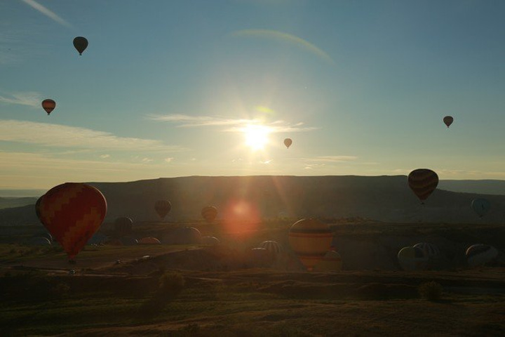 吃完早餐坐着小巴,把我们送到了热气球起飞的地方,此时已经可以看见几个热气球已经升空了。