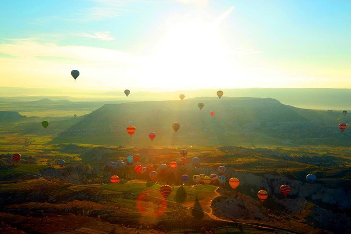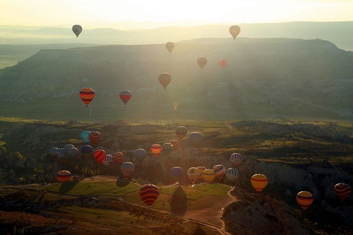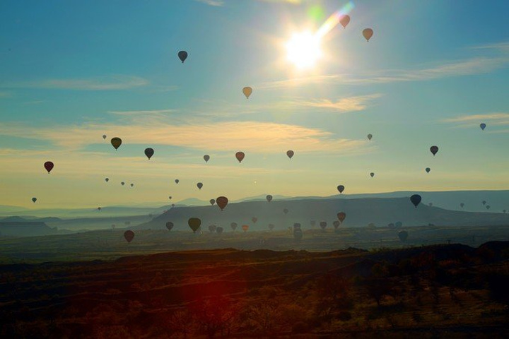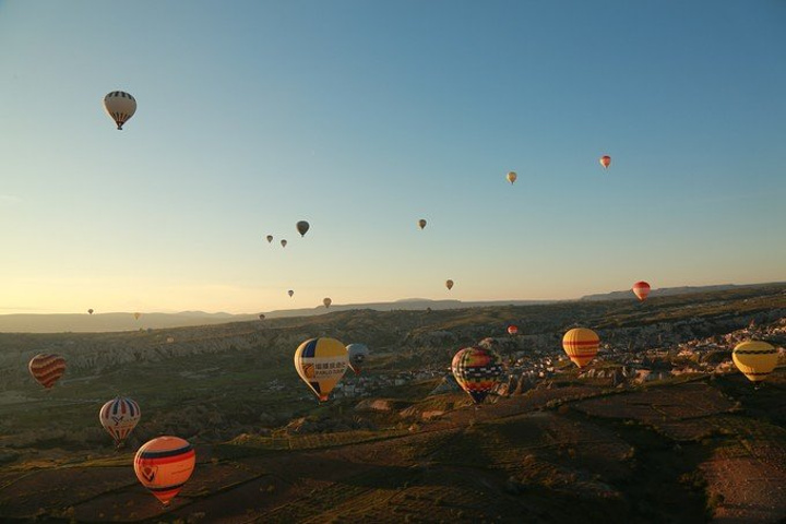密密麻麻的热气球也在同时起飞着,天空中顿时满眼热气球。