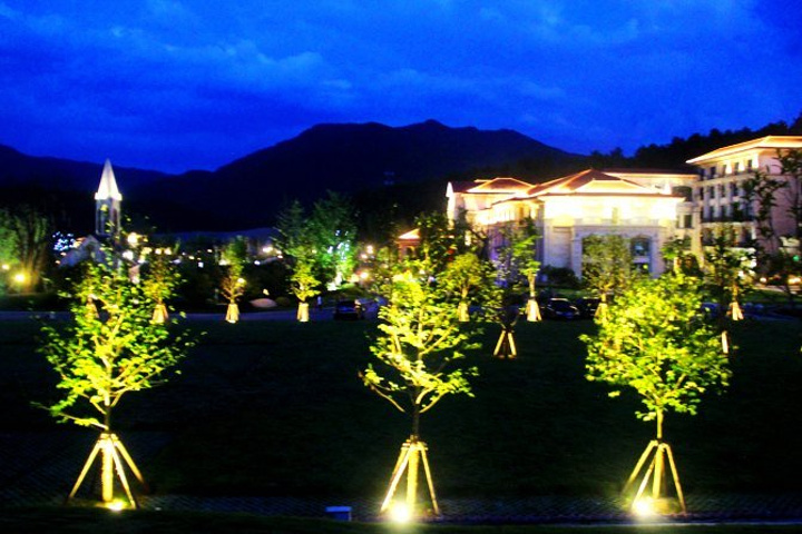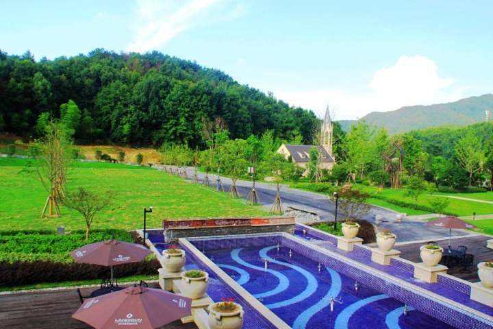 这是一座浪漫的庄园,地中海法式建筑风格,音乐喷泉、钓鱼岛、婚庆大草坪、沙滩泳池、教堂、果园、房车露营基地...... 风情万种,令人仿佛置身于异域的度假胜地。