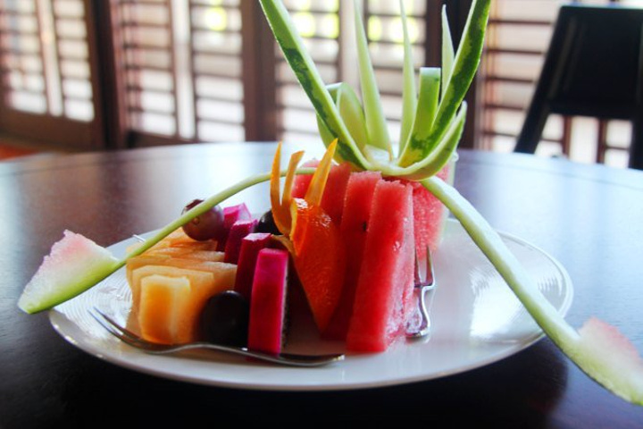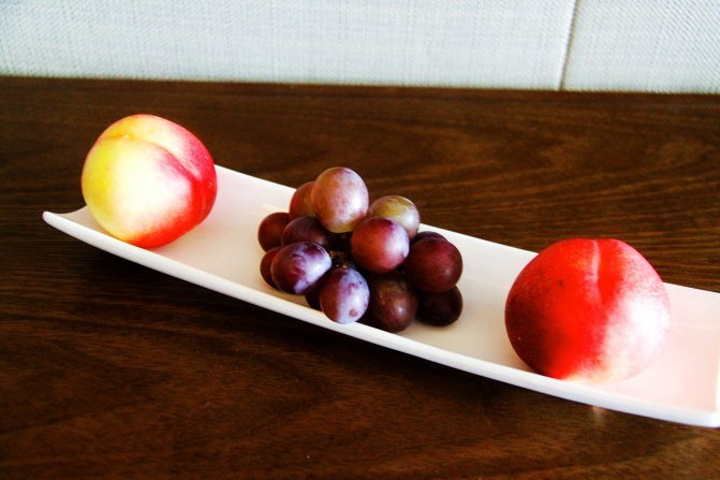 当我放好行李,欣喜地发现酒店准备的果盘已经放在茶几上了。