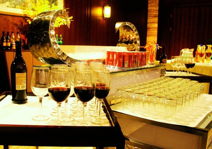 忆江南中餐厅雍容气派,进门就被一扇酒墙吸引住了视线。我有酒,你有故事吗?