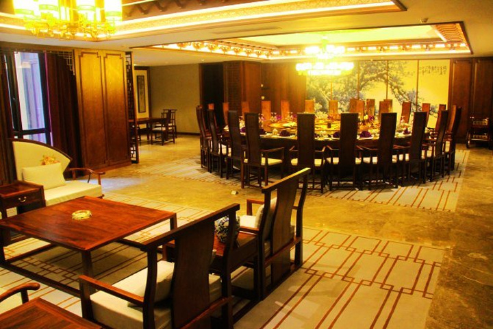 推开其中的魏山厅是总统套间的感觉,超级大,可以在里面踢足球了。