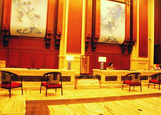 走近酒店主楼,大堂高大上,中央一盏豪华水晶灯,配合富丽堂皇的装饰和家私,尽显欧陆古典主义风格的高贵,让人有当了一回土豪的感觉。