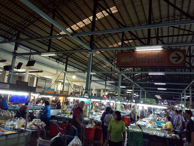 香港飞甲米,到甲米后是早晨的4:30,这一时间段班机的客流量很大,有很多旅行团也是落地签的,需要排队比较长时间。由于出发前办签证时间来不及了,所以是落地签,我在出发前就打印好了泰国落地签的申请表并且填好贴好照片,到甲米机场落地签那里直接给1200B一人,不到一分钟就办好了。所以大家去之前如果是落地签可以准备一些办理落地签的泰铢,每人1200B,其它愿意多带些可以带些人民币,入境后大厅里直接有货币兑换的,是5.13,比取款机普遍的5.06以及后面所有城市的货币兑换都高。由于到了甲米后,早晨行程是早市,所以提前在网上预订的接机,90人民币,直接送到甲米早市,到了目的地后可以给个20-100B小费。甲米早市的正确名字是叫:MAHARAJ MAKET。如果怕司机找不到,可以在手机里保存一下我下面的图片,都懂的。