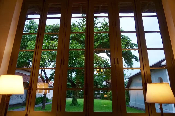 白色围墙外,人声车声甚至邻近佛寺之钟磬佛诵俱相闻,在围墙内的客人们却全然与外生活在两个世界,可以安静而优雅地在meeting room喝着下午茶翻阅书籍,可以被绿色草坪拥抱的长条形泳池中舒展手脚,更可以在法式白色石栅栏的窗畔听着巴赫闲坐发呆。