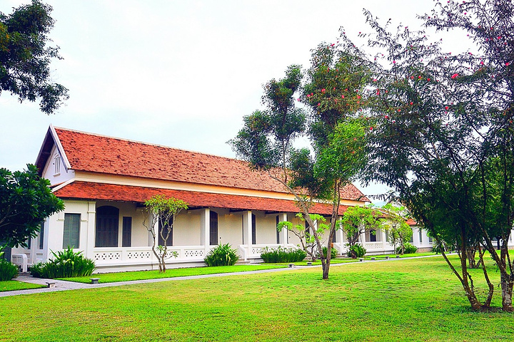 白墙淡绿门窗的房间,全柚木的家具,白色幔帐的床,弧形把手的靠椅,扁窄两层抽屉的书桌,被划分成许多小块长方形的玻璃窗,正方形装琅勃拉邦僧侣照片的相框。
