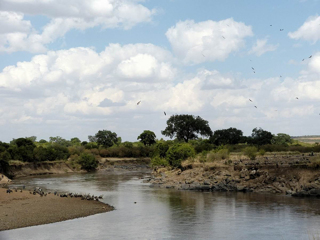 大群的角马和斑马从早上开始,就已经在马拉河畔集结。