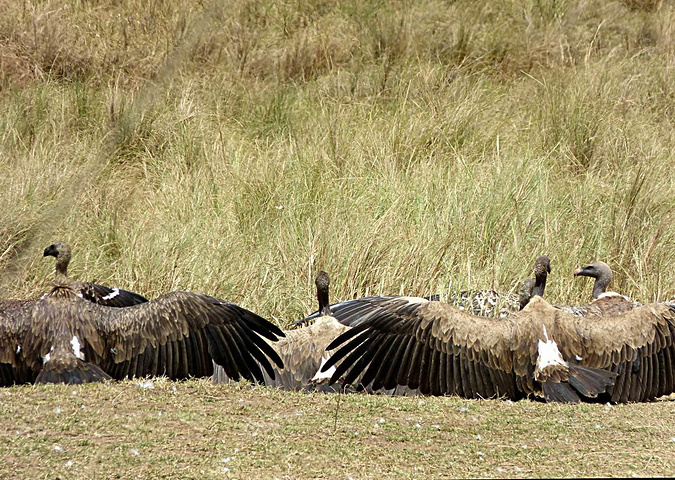 午后的天气太热,秃鹫都张开了翅膀。